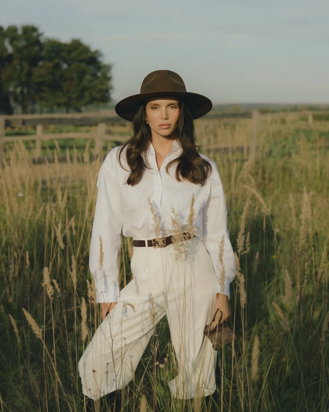 - The 7 cm crown height creates a strong yet graceful proportion for any face shape